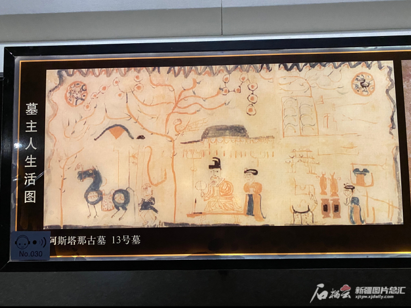 陈列于新疆博物馆的墓主人生活图。石榴云/新疆日报记者 赵梅摄