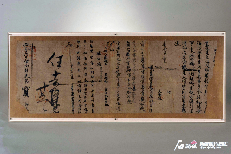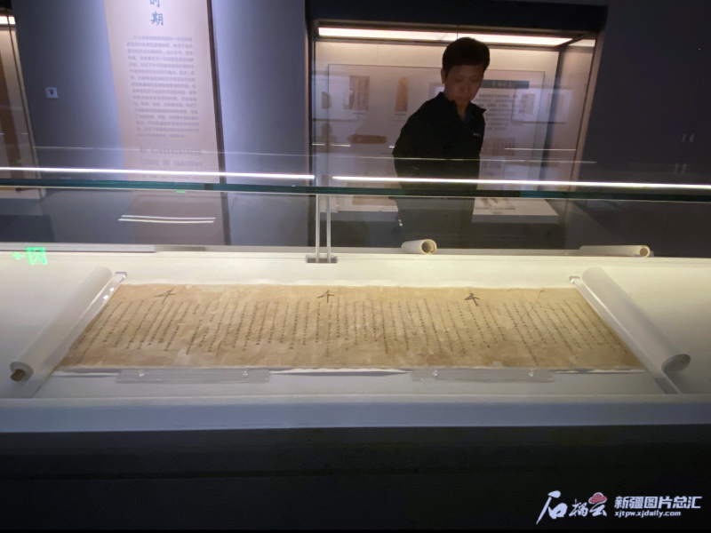 陈列于新疆博物馆的“石染典过所”文书。石榴云/新疆日报记者 赵梅摄