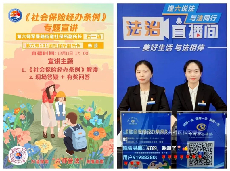 邀请师市人社局业务骨干采用“主题宣讲+有奖竞答”围绕《社会保险经办条例》向职工群众讲解缴纳社保、退休待遇等“疑难杂症”。直播中,网友纷纷抢答问题,参与热情持续高涨,单场直播覆盖9000余人次,线上解答咨询15人次,送出“法治礼包”12份,让职工群众足不出户便能了解到最新的政策法规,真正打通法治培训“最后一公里”。